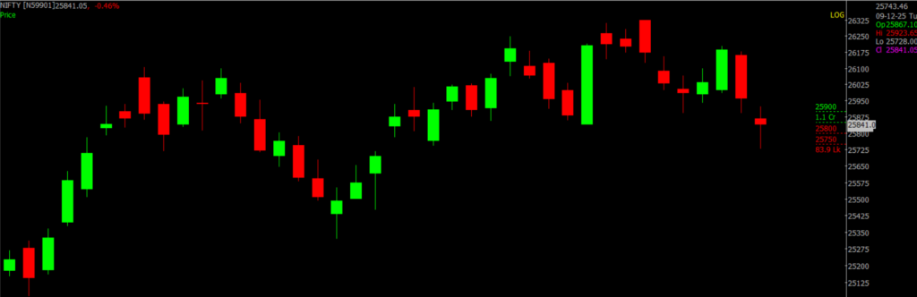 Prediction for Wednesday NIFTY can go up if it goes above25,800 or down after the level of 25,700, but it also depends upon the Global cues.