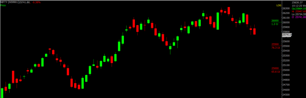 Index now faces immediate resistance at 25,800–26,200, while key support levels are positioned at 25,700–25,500.