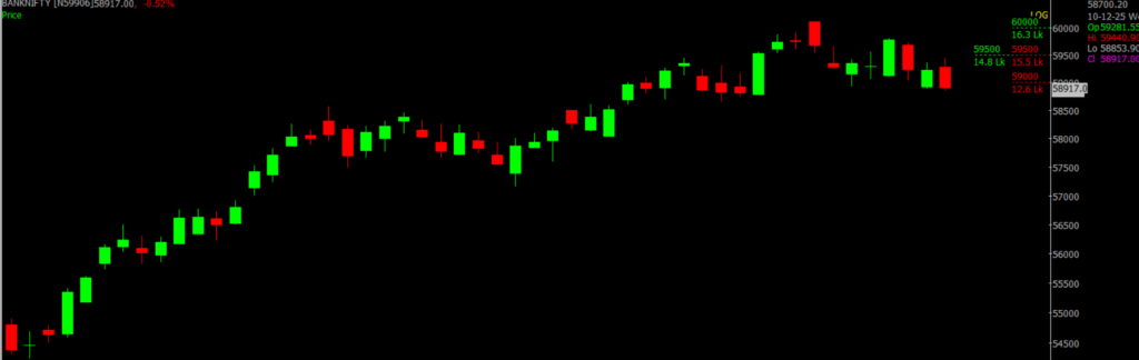 Prediction For Thursday BANKNIFTY can go up if it goes above 59,500 or down after the level of 59,000, but it also depends upon the Global cues.