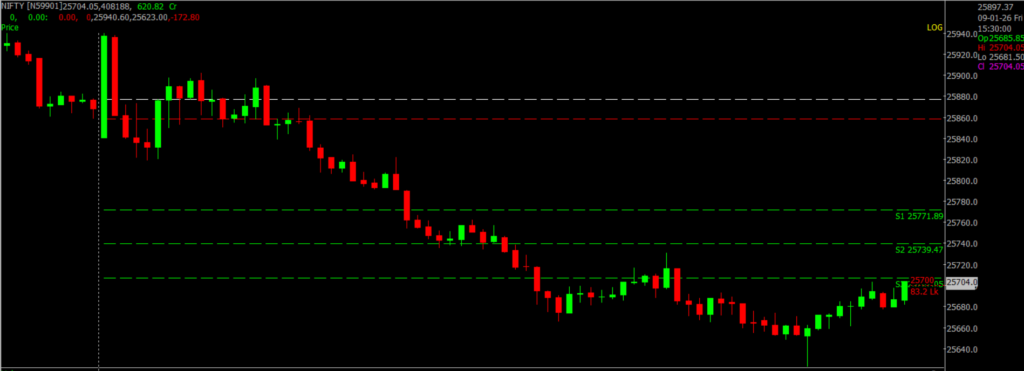 | Support | 25,800 and 25,500 |
