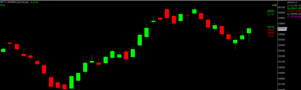 Traders are advised to stay focused on individual stocks, manage risks carefully, and look for rotational opportunities across sectors in this volatile market. Resistance at 25,600–26,000 and support at 25,500–25,000.