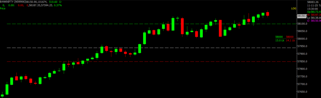 Prediction For Wednesday BANKNIFTY can go up if it goes above 58,100 or down after the level of 57,800, but it also depends upon the Global cues.