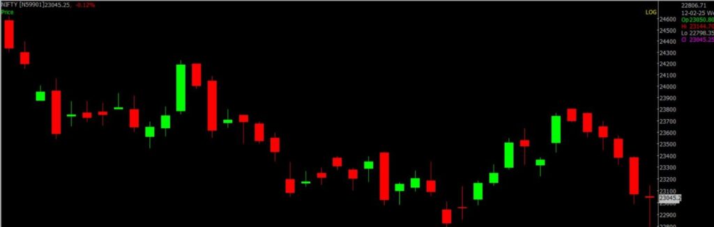 The Indian market showed a small recovery after a sharp drop earlier in the day, but overall mood stayed weak because of high market valuations and slow earnings growth in Q3. After falling more than 900 points at the start, the market regained some ground later, but profit-taking in IT, banking, and auto stocks caused the indexes to close slightly lower. The market faces resistance between 23,100 and 23,400, with support between 22,800 and 22,400.
