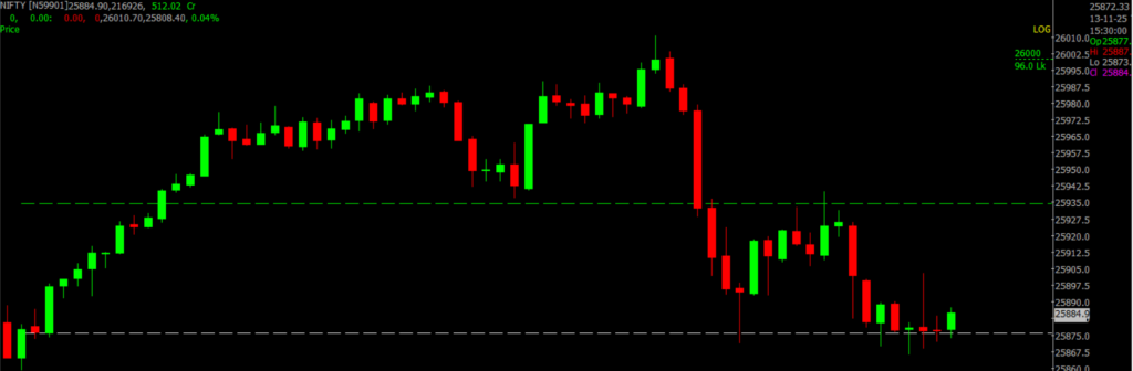 Looking ahead, immediate resistance is seen at 25,900–26,200, while key support lies between 25,700–25,200.