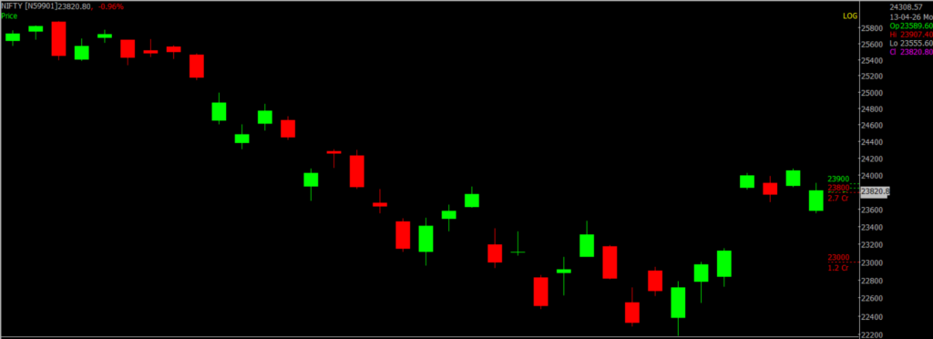 However, a decisive breakdown below 23,600 may trigger further selling pressure, dragging the index towards the lower end of the support zone near 23,000. On the upside, a strong move above 23,800 could revive bullish momentum and open the path towards 24,400 in the near term. Overall, the market remains range-bound with a slight bearish bias unless key resistance levels are convincingly breached.