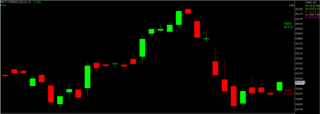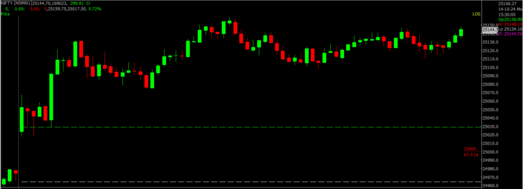 Nifty opened with a gap up and maintained a positive trend throughout the day, closing with a gain of approximately 164 points. The daily charts indicate that Nifty has resumed its upward movement toward 25,500 after a brief consolidation phase lasting three days. We anticipate that this upward momentum will persist in the coming trading sessions, targeting the 25,200 – 25,500 range. The support level has now shifted higher to 25,000 – 24,700.