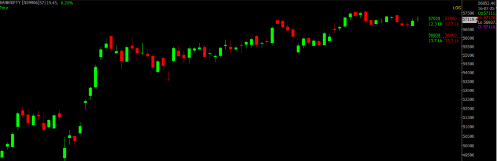 Prediction For Thursday, BANKNIFTY can go up if it goes above 57,300 or down after the level of 56,900, but it also depends upon the Global cues.