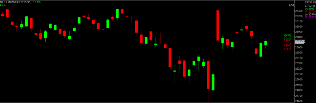 On Feb 17, Sensex rose 173.81 points to 83,450.96, while Nifty gained 42.65 points to 25,725.40. Around 2,297 shares advanced, 1,730 declined, and 142 remained unchanged.