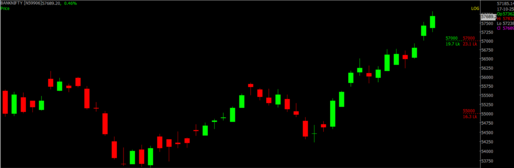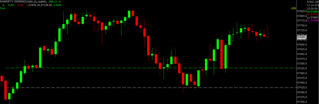 Prediction For Monday BANKNIFTY can go up if it goes above 57,600 or down after the level of 57,300, but it also depends upon the Global cues.