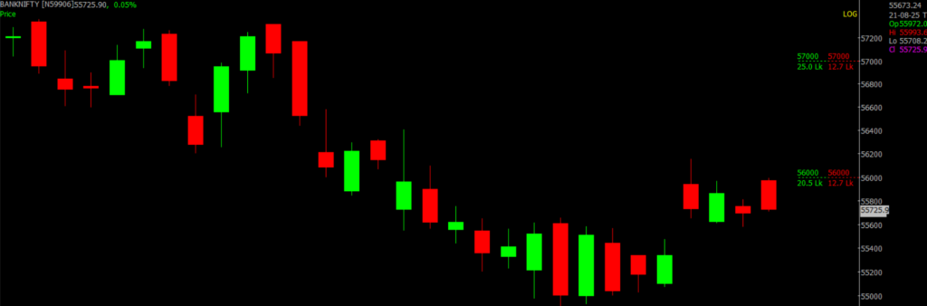 Fresh short positions can be considered only if Banknifty closes below the 55,379 level. On the upside, resistance is expected in the 55,800–56,400 zone, while immediate support is likely to be found between 55,600–55,200.