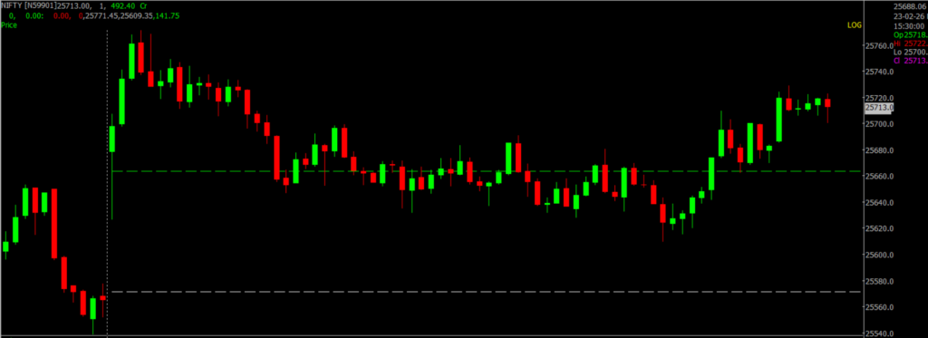 On Feb 23, the Sensex was up 479.95 points or 0.58 percent at 83,294.66, and the Nifty was up 141.75 points at 25,713. About 1852 shares advanced, 2274 shares declined, and 171 shares unchanged.