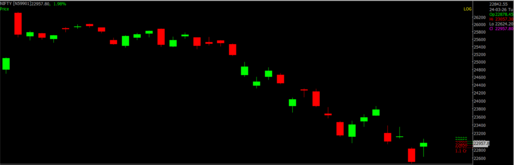 On March 24, Sensex was up 1,372.06 points at 74,068.45, and the Nifty was up 445.15 points at 22,957.80. About 2,843 shares advanced, 1,257 shares declined, and 152 shares remained unchanged.
