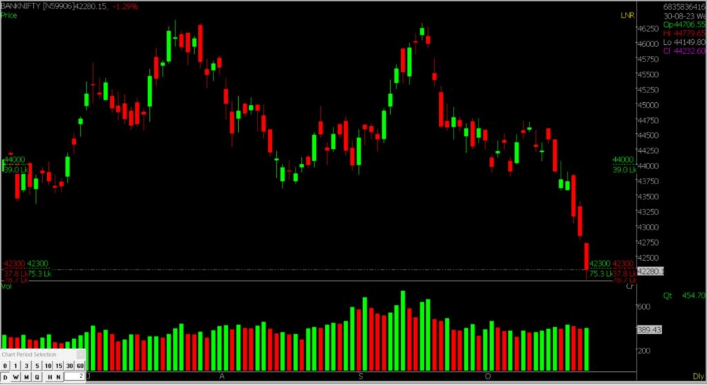 Today, BANK NIFTY opened gap down in morning but after that there was more downward move. Today bank nifty has closed in red and closed near its critical level of 42300 which has made bank nifty weak again For Friday. you can go with the strategy of sell on rise.