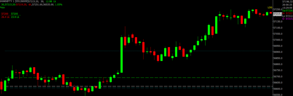 Bank Nifty is currently in a positive trend. If you’re holding long positions, continue to hold with a daily closing stop loss at 56,328. A fresh short position can be considered if Bank Nifty closes below the 56,328 level. Key resistance is expected in the 57,100–57,500 range, while support is seen between 56,500 and 56,000.