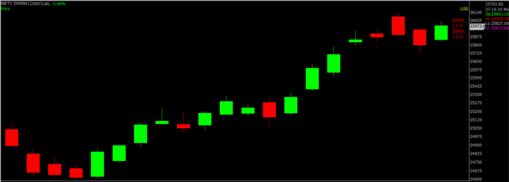 In today’s stock market, Global cues fueled a market rebound, with bulls driving Nifty to test 26,000 & Sensex climbing over 550 points.