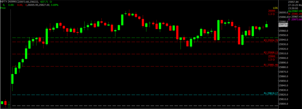 | Highest Put Writing at | 25,900 (1.5 Cr) |