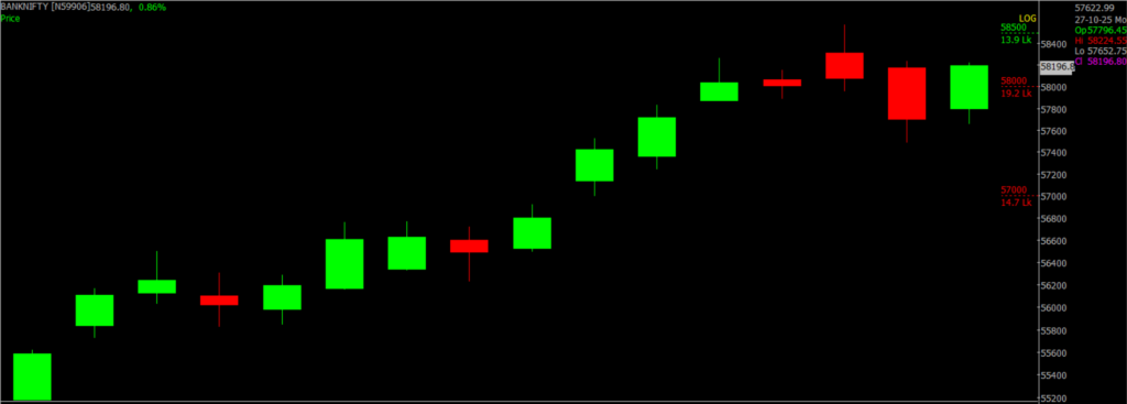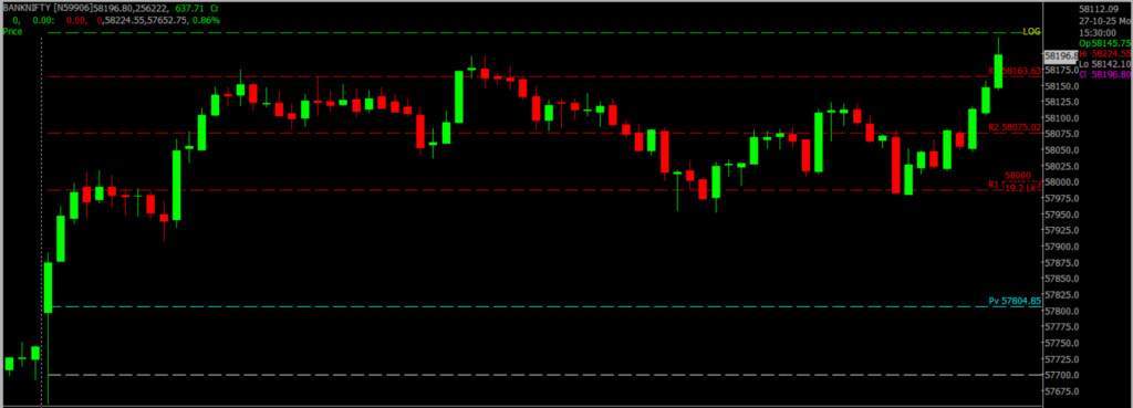 Prediction For Tuesday BANKNIFTY can go up if it goes above 58,500 or down after the level of 58,000, but it also depends upon the Global cues.