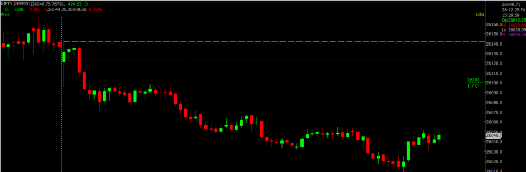 On the upside, resistance is seen in the 26,100–26,300 range, while key support is placed between 25,900 and 25,600.