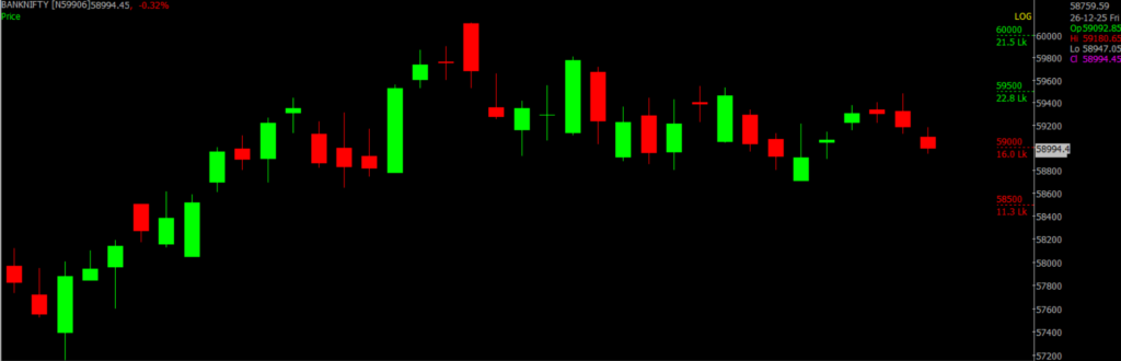 Prediction For Monday BANKNIFTY can go up if it goes above 59,100 or down after the level of 59,000, but it also depends upon the Global cues.