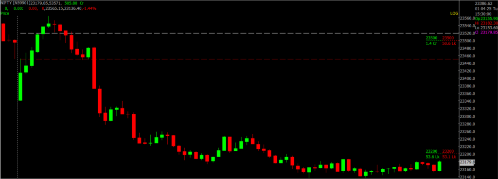 Nifty experienced significant weakness and ended the session down by 353 points. Although the market opened on a negative note, it quickly attempted a recovery. However, sentiment soon turned bearish, leading to intraday weakness during the early to mid-session. Later, the index moved into a range-bound phase toward the close. Resistance is seen at 23,500-24,000, while support lies between 23,000-22,500.