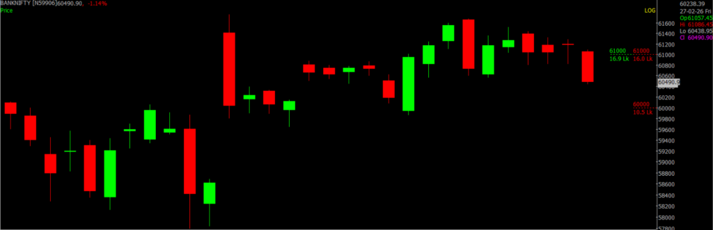 Prediction For Monday BANKNIFTY can go up if it goes above 61,000 or down after the level of 60,600, but it also depends upon the Global cues.