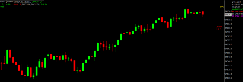 Going forward, the market may move sideways for a while after the recent decline. Even though India’s economy is growing well, concerns like foreign investors pulling out money and global trade issues could make traders cautious. The Nifty faces resistance between 24,600 and 24,900, while support is likely around 24,300 to 24,000.