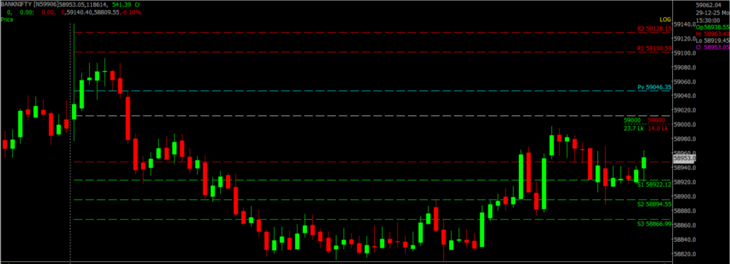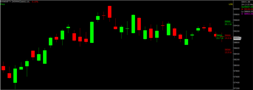 Prediction For Tuesday BANKNIFTY can go up if it goes above 59,100 or down after the level of 59,000, but it also depends upon the Global cues.
