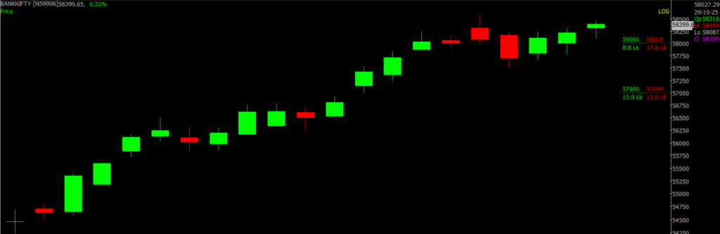 | Highest Put Writing at | 58,000 (12.0 Lk) |