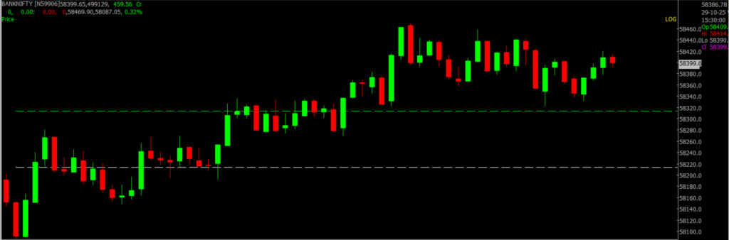 Bank Nifty (58,385): The index remains in a negative trend. Traders holding short positions can continue to hold with a daily closing stop-loss at 58,393. Fresh long positions may be considered only if Bank Nifty closes above 58,393. Key resistance lies between 58,300–58,500, while support is seen in the 58,000–57,500 zone.