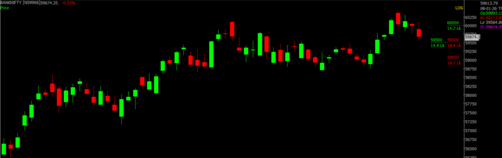 Prediction For Friday BANKNIFTY can go up if it goes above 59,500 or down after the level of 59,400, but it also depends upon the Global cues.